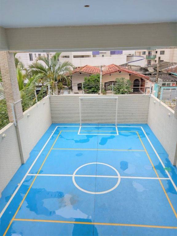 Amplo apartamento de 1 dormitório sendo 1 suíte + banheiro social com chuveiro, terraço social, vista parcial mar localizado na 1° quadra da praia no bairro da Aviação em Praia Grande. Prédio possui infraestrutura como: elevadores, salão de jogos, piscina