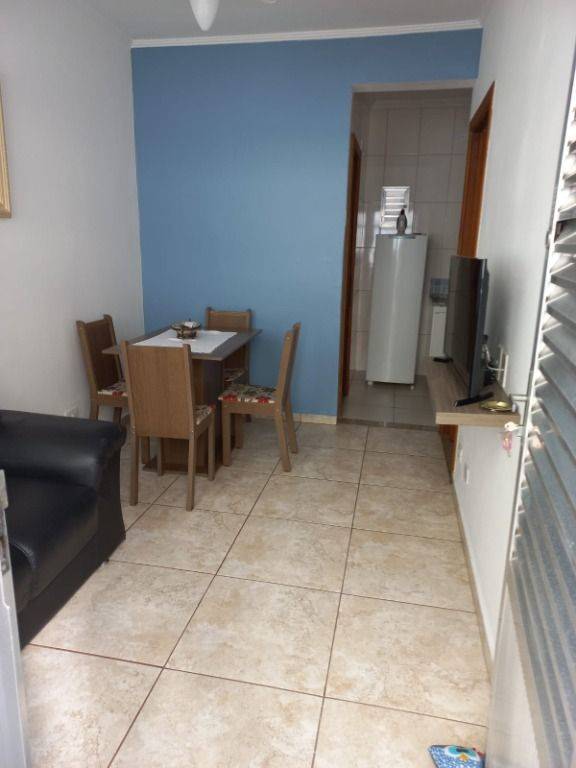 Apartamento mobiliado de 1 dormitório, sala com sacada, cozinha e área de serviço independente, wc social e uma vaga de garagem. Localizado na Aviação em Praia Grande-SP . Prédio com salão de festas e churrasqueiras na cobertura.Entre em contato com um de