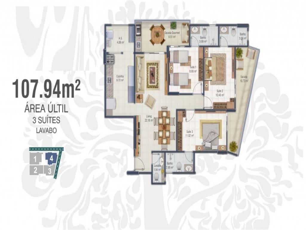 Lançamento no Canto do Forte em Praia Grande - Apartamento em Construção.Apartamentos com 3 suítes, terraço com churrasqueira e vista mar (privilegiada em andares altos), lavabo, e com 2 vagas privativas (3 vagas privativas somente no 7º e 9º andar). O pr