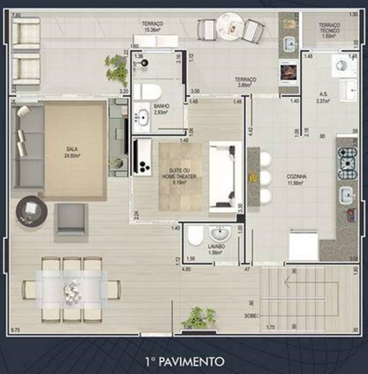 Sobrado de alto padrão com 04 dormitórios, sendo 03 suítes, sala 03 ambientes, cozinha com ilha em mormoglass importado, lavabo, ampla área de serviço e 06 vagas de garagem.Todos os ambientes climatizados com ar condicionado split, piso e azulejos em porc