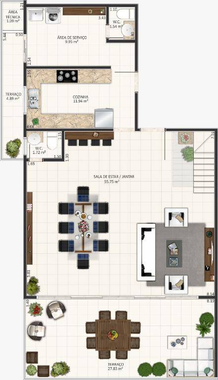 Projeto inovador para quem busca qualidade e sofisticação - Amplo apartamento com 03 suítes com living, lavabo, belíssima vista livre para as montanhas e mar e sala integrados ao terraço gourmet - dependência de empregada - WC empregada - 03 vagas de