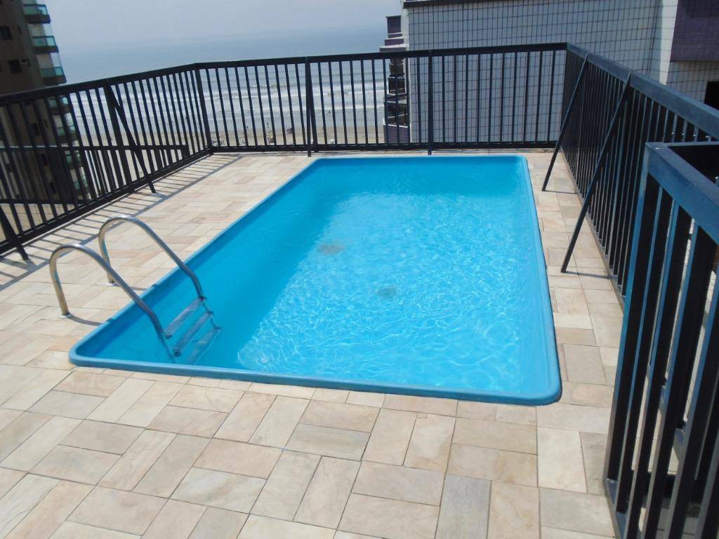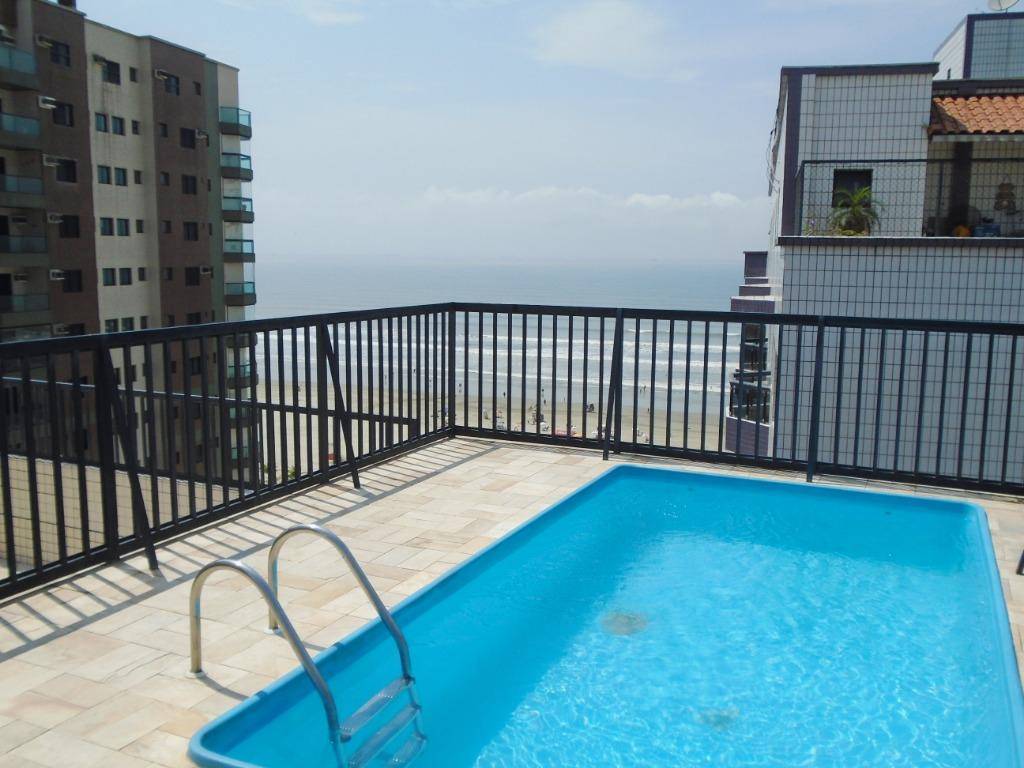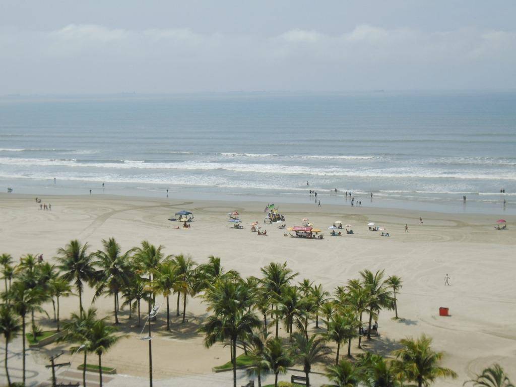 Amplo apartamento de 1 dormitório sendo 1 suíte + banheiro social com chuveiro, terraço social, vista parcial mar localizado na 1° quadra da praia no bairro da Aviação em Praia Grande. Prédio possui infraestrutura como: elevadores, salão de jogos, piscina