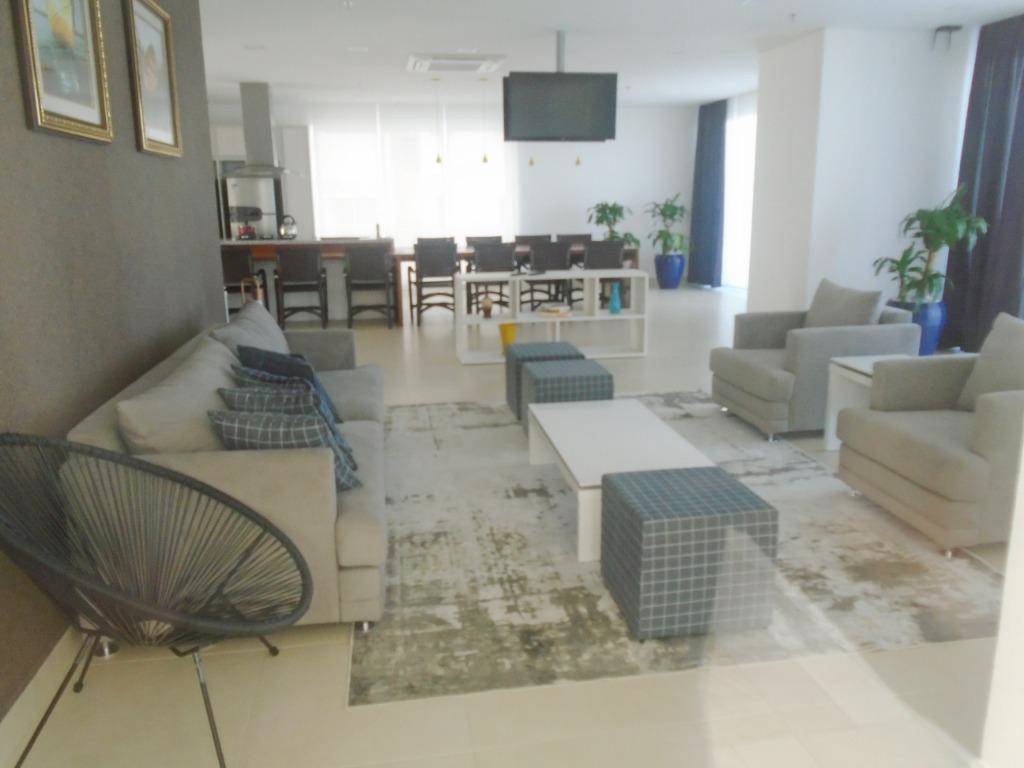 Apartamento novo (entregue em 2017) de frente para o mar, com 3 dormitórios sendo 2 suítes, sala 2 ambientes, terraço com churrasqueira, cozinha, área de serviço independente e 2 vagas de garagem. Além de uma vista para o mar privilegiada em andares mais