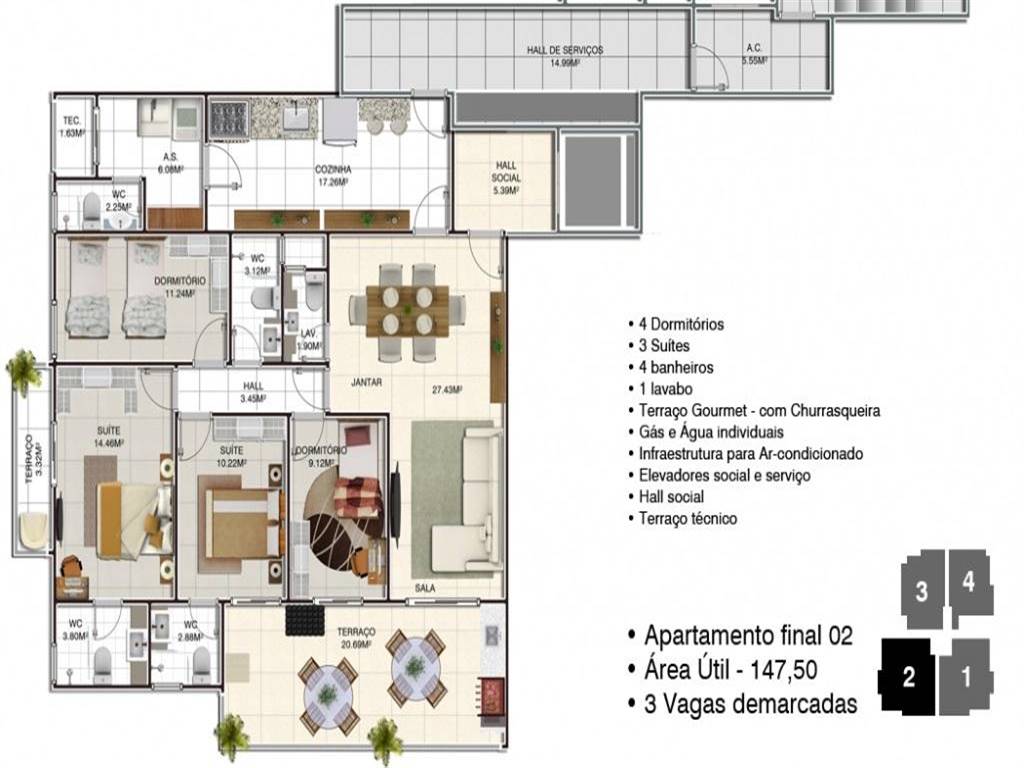Área Útil147,00m²