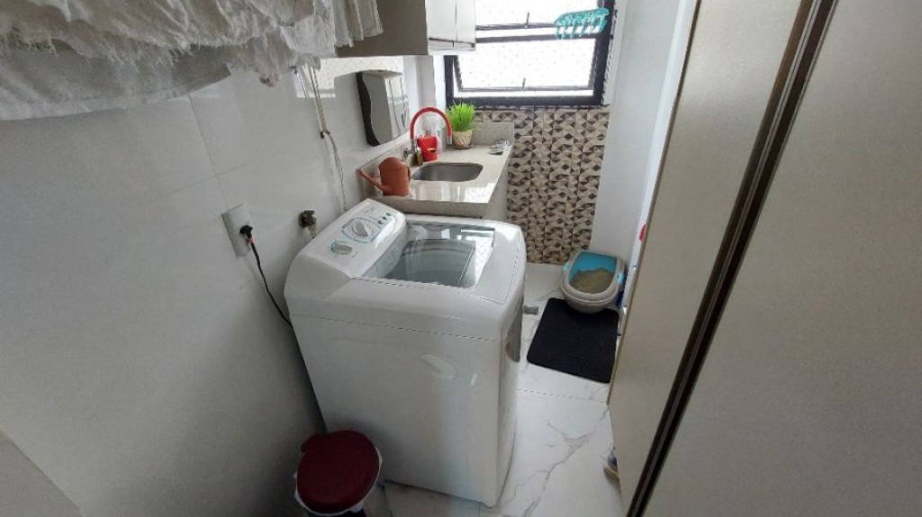 02 Dorns, sendo 01 suite, sala, cozinha, área de serviço, 1 vaga de garagem, vista livre com alguma vista, entre prédios para o mar, no bairro da Guilhermina.