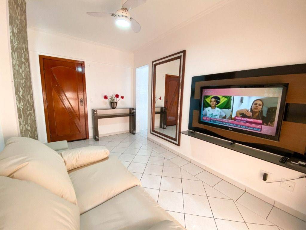 Apartamento com 1 dormitório à venda, 58 m² por R$ 285.000 - Mirim - Praia Grande/SP - Apto de 1 dormitório com 2 camas de casal- sala de estar com sofá-cama e painel e aparador- cozinha ampla com armários planejados e eletrodomésticos em inox, sendo gela
