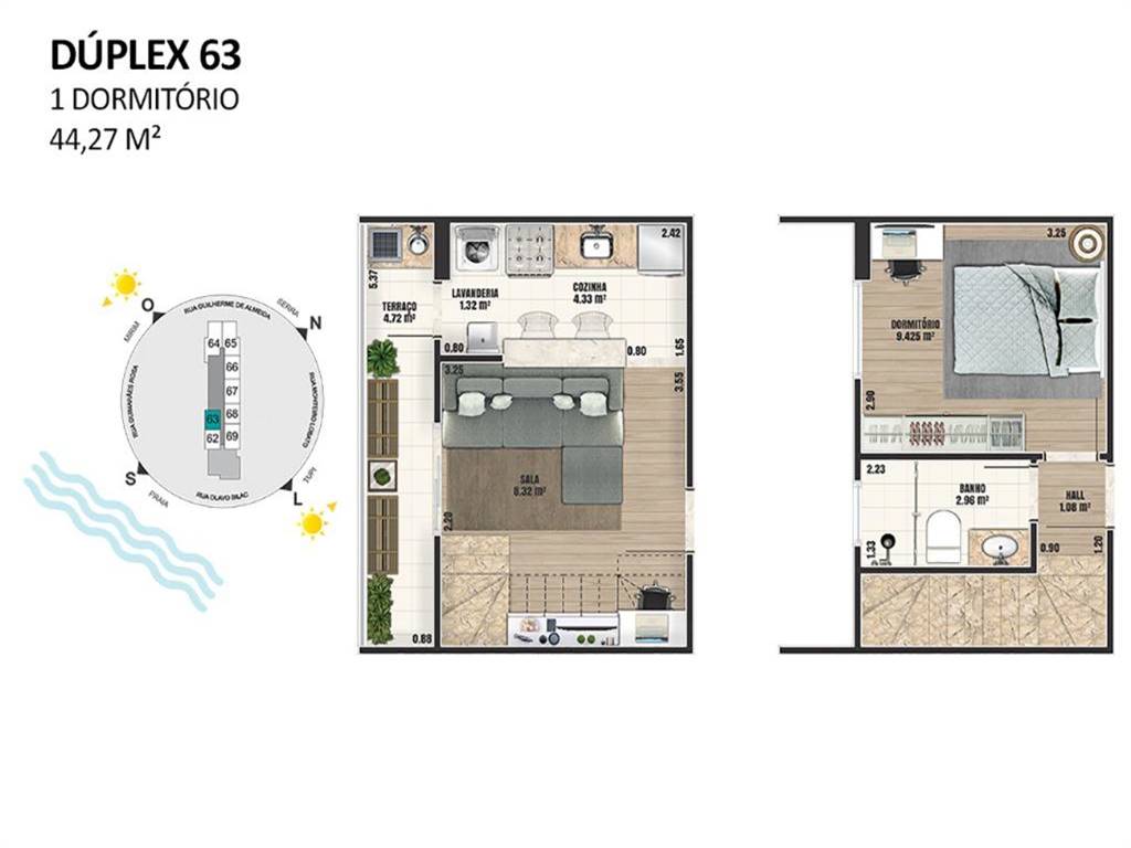 Apartamento Duplex em construção de 1 dormitório, sala, belíssimo terraço com churrasqueira, banheiro social e 1 vaga de garagem com previsão de entrega para outubro/2020. O prédio está localizado no bairro Ocian em Praia Grande a 3 quadras da praia e pos