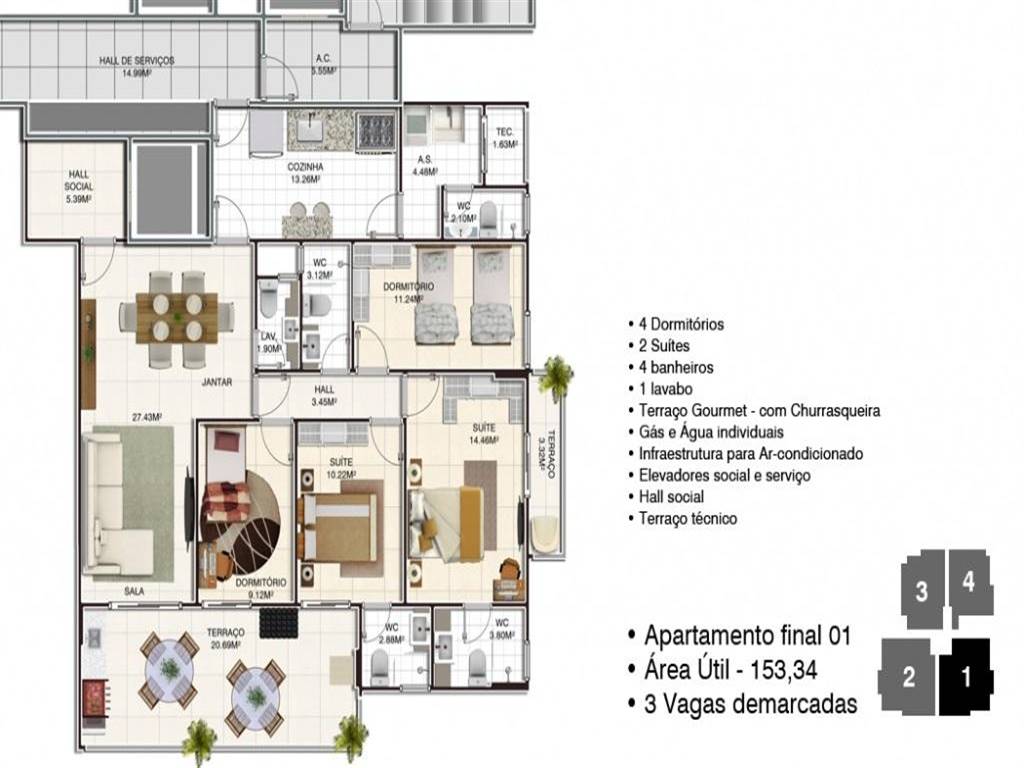 Área Útil153,00m²