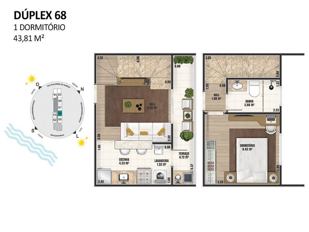 Apartamento Duplex em construção de 1 dormitório, sala, belíssimo terraço com churrasqueira, banheiro social e 1 vaga de garagem com previsão de entrega para outubro/2020. O prédio está localizado no bairro Ocian em Praia Grande a 3 quadras da praia e pos